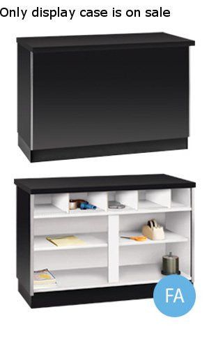 Ledgetop Counter Showcase in Black 48 W x 22 D x 42 H Inches with 2 Glass Shelf