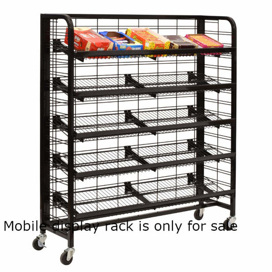 Black Mobile Display Rack 48 W x 13 D x 52 H Inches with 5 Shelves